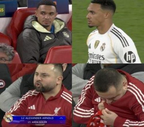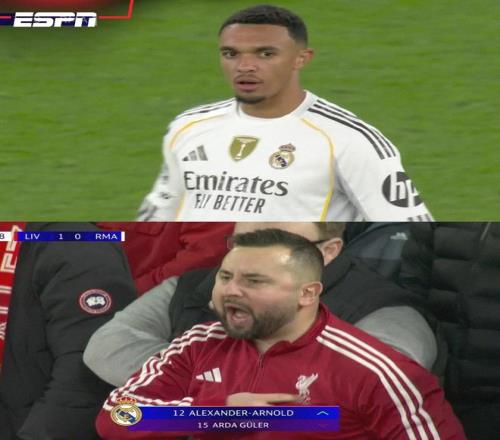 下半场第81分钟,利物浦旧将阿诺德替补登场。值得一提的是,在他登场时,转播镜头给到一位看台上的利物浦球迷,他手指并亲吻了衣服上的利物浦队徽,情绪激动。